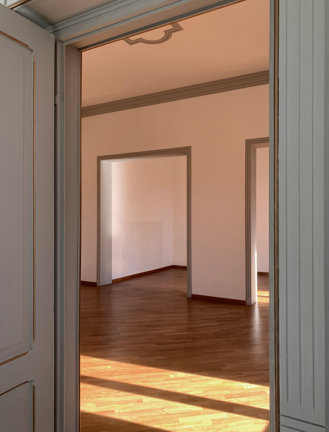 In puro stile francese, l’appartamento si trova al secondo piano del palazzo ed è stato ricavato da un appartamento più grande, del quale ha conservato stucchi, affreschi, vetrate e porte liberty. L’appartamento dispone di spazi ampi così organizzati: una zona giorno di rappresentanza composta da due vani comunicanti, sala da pranzo con cucina, due camere signorili doppie e tre bagni.