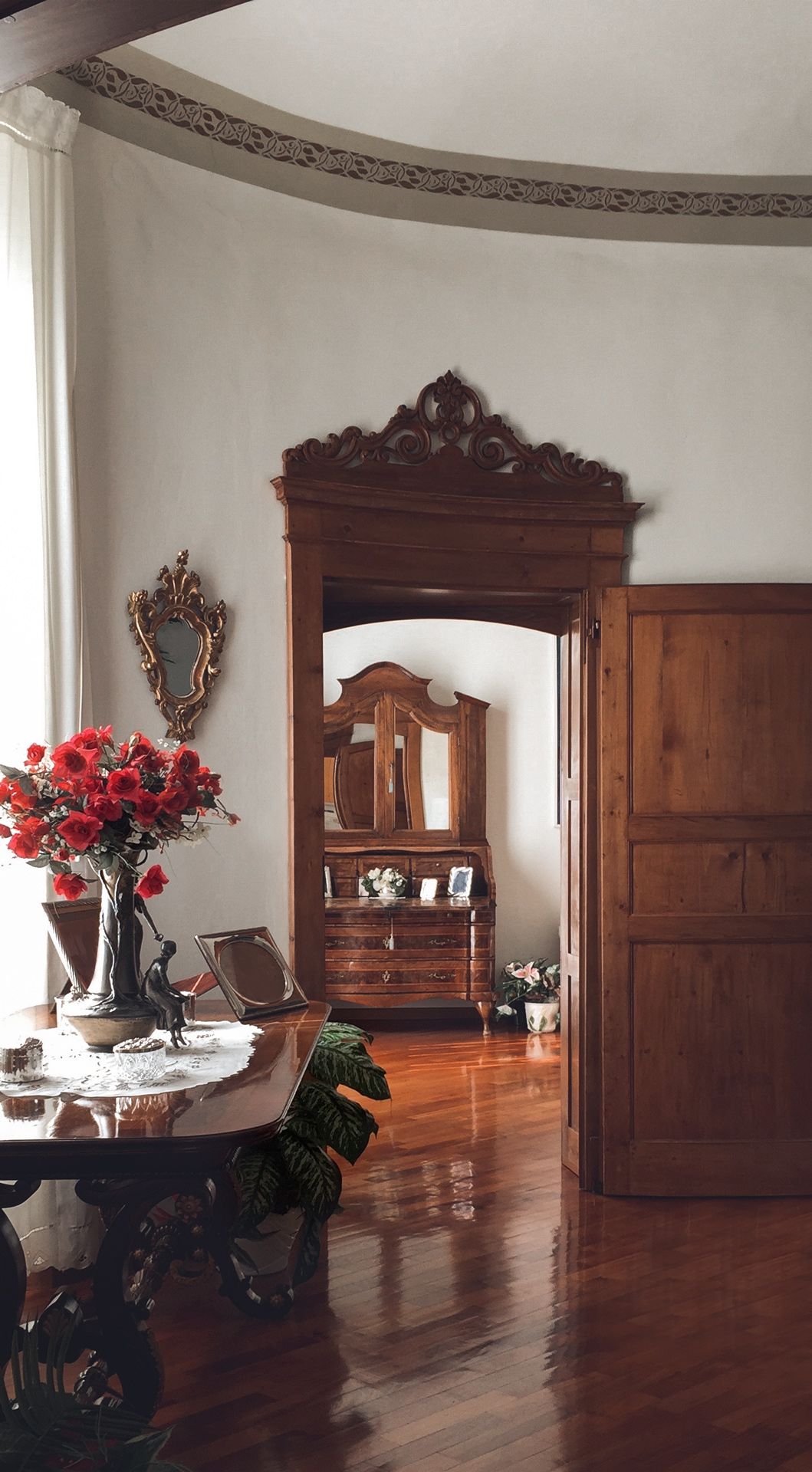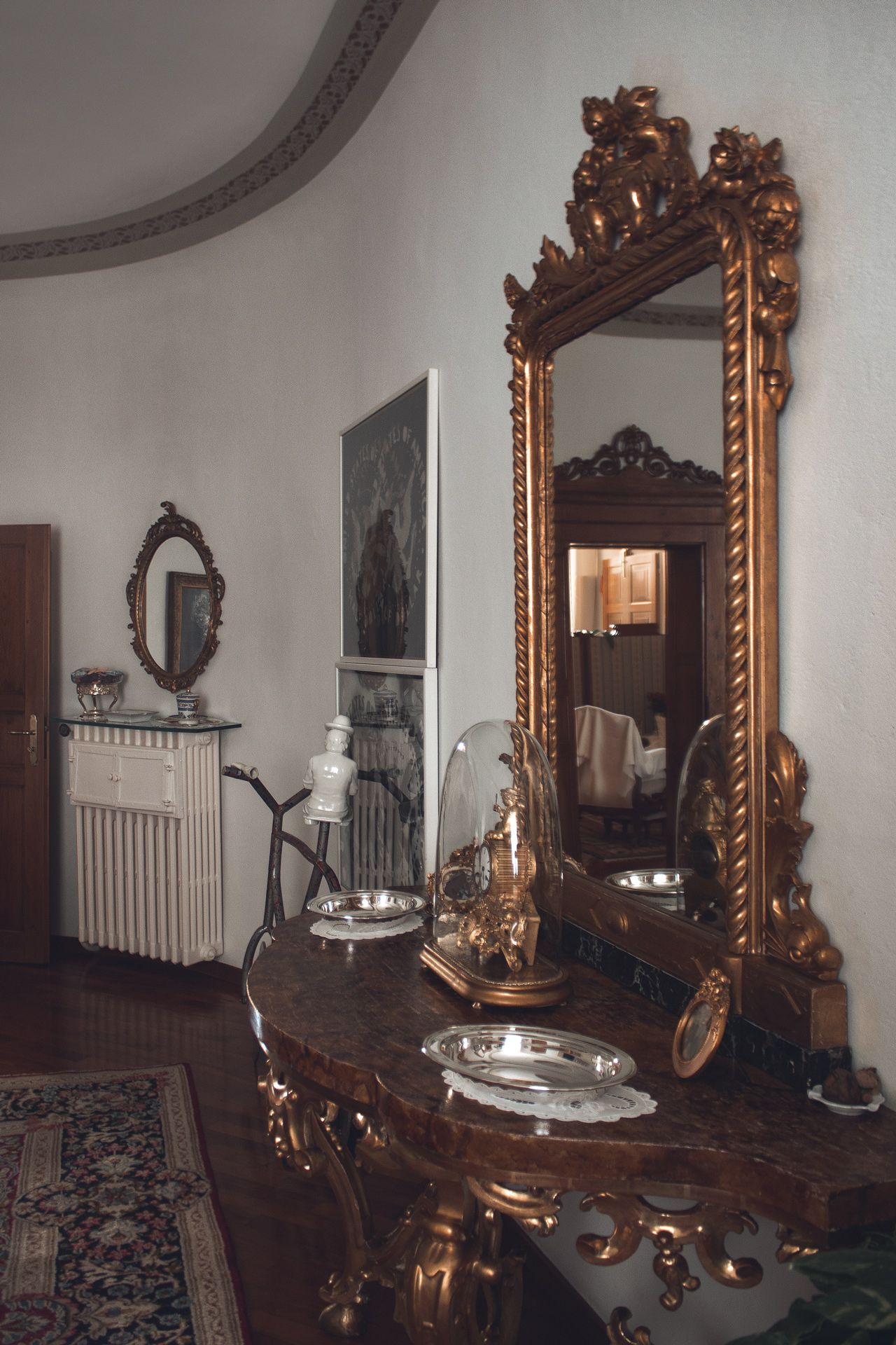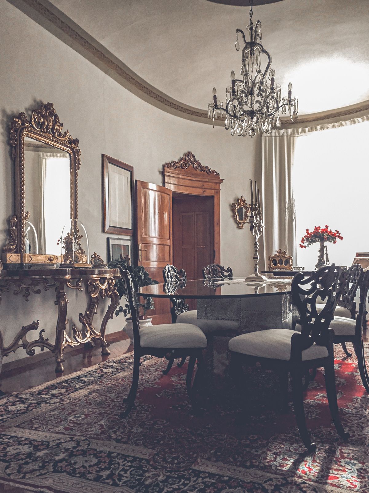 La sala, fulcro storico dell’intero edificio, fu costruita nel 1612 circa per ospitare la cappella dei frati Carmelitani, di estremo pregio e di chiaro disegno barocco le porte e la sala di forma ellittica. Purtroppo nei secoli gli affreschi vennero coperti e ciò che rimane ora è un restauro attento degli elementi aggiunti tra il 1700 e il 1800. Il pesante lampadario centrale ha più di 200 anni e contrasta in sintonia con le opere d’arte circostanti realizzate da grandi maestri della pop-art Italiana.